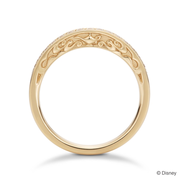 「アリエル」が住む海底をイメージしたデザイン。貝殻やサンゴ、海の泡を凹凸で表現しています。ダイヤモンドのまばゆい輝きは、「アリエル」の夢を追い求める強い姿勢を感じるよう。