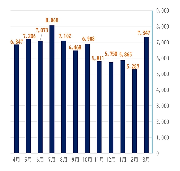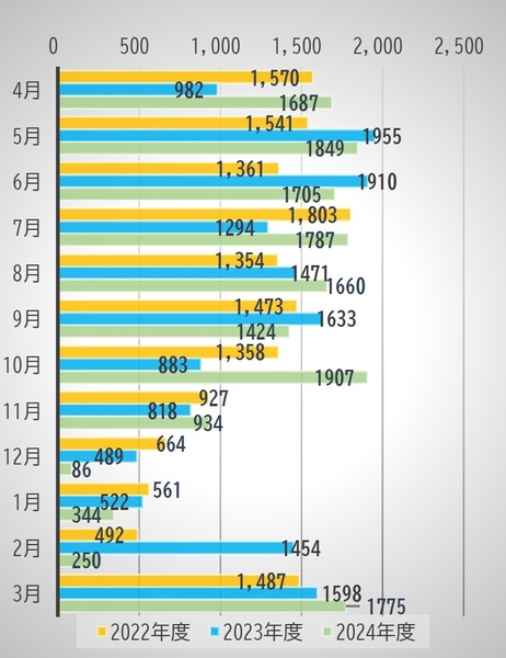 ■2024年度の忘れ物件数(月別)