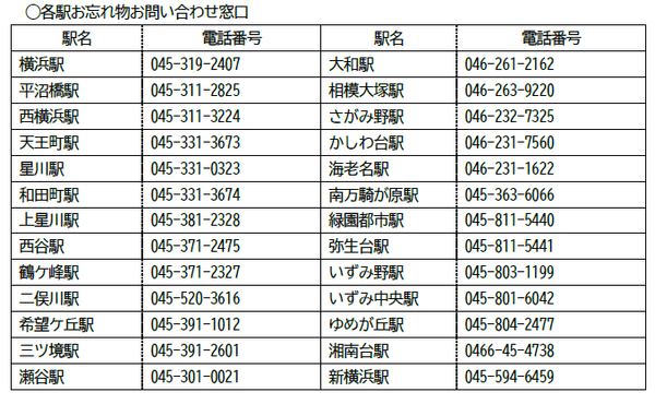 ◯相鉄お忘れ物センター(相鉄本線 二俣川駅) 電話番号 045-391-5207