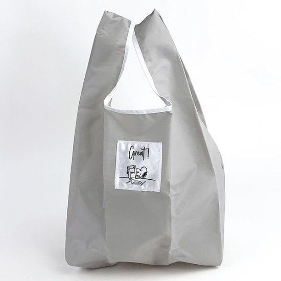 カラーはグレーのSサイズで、中央にスヌーピーのイラスト付きのタグがデザインされたシンプルなバッグです。