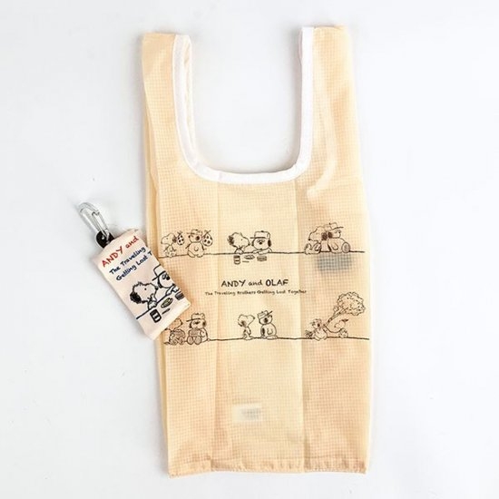 スヌーピーの兄弟・アンディとオラフがデザインされた、エコバッグが登場です。ベージュ地にアンディ&オラフのほっこり仲良しデザインが描かれていて、かわいいバッグですよ♪