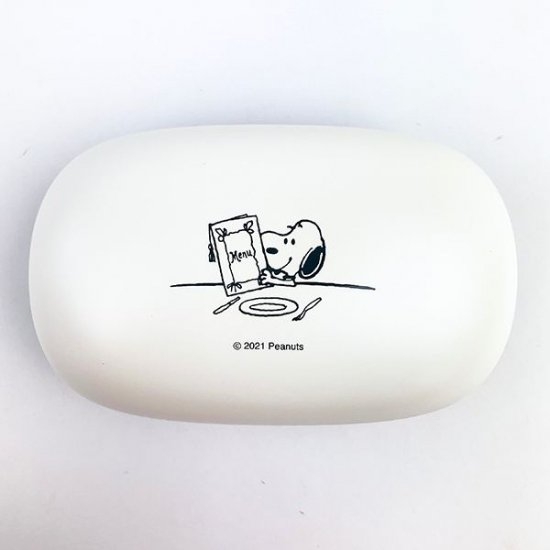 コロンと可愛いこちらのランチケース、ホワイトとネイビーの組み合わせが年代問わず使えるデザインですよね!人気のスヌーピーランチシリーズの新柄なんです♪メニューを持ったスヌーピーがとってもキュート♡