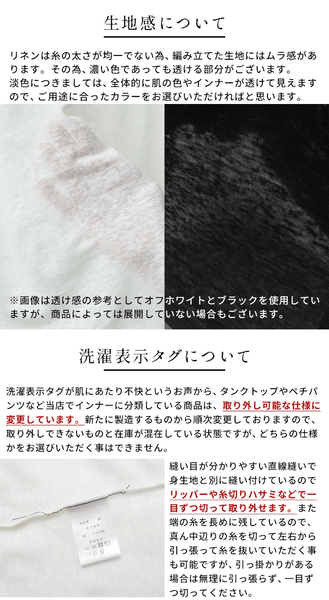 優れた【吸湿性、通気性、速乾性】により、汗をかいてもべたつかず、いつまでもさらりと涼しい着心地を保ちます。プレミアムリネン100%だからこそ実現できる快適さを体験していただける、タンクトップ・キャミソールをご用意しました。