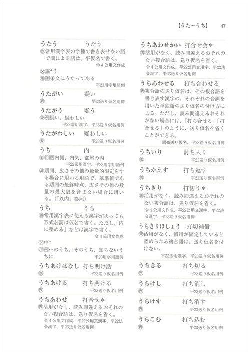 ◆公用文で通常使われる1万語を超える用字用語を50音順に配列し、詳しい注釈が付してありますので、公用文における用字用語の正しい書き表し方などを簡単に素早く調べることができます。