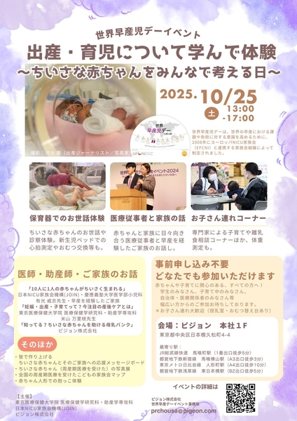 当社では、「世界早産児デー」応援アクションの一環として、10月25日(土)に本社でイベントを開催いたします。詳しくはこちらをご覧ください。
