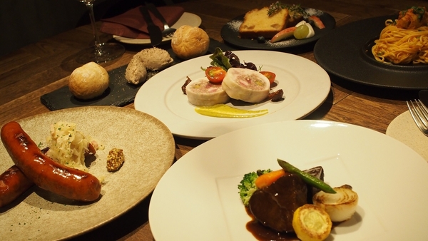 コース内容は、自家製パン・前菜2品・魚料理・肉料理・デザート・食後の飲み物で、シェフのおまかせ料理が提供されます。