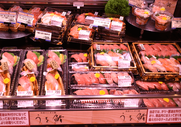 人気のローストビーフや豚バラ肉を使用した肉寿司、出汁に漬け込んだネタを使用したにぎり寿司など、ちょっと変わった商品も取りそろえます。