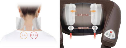 もみヘッドが左右に動きます。しっかりとほぐすプロの手技のようなもみ心地です。