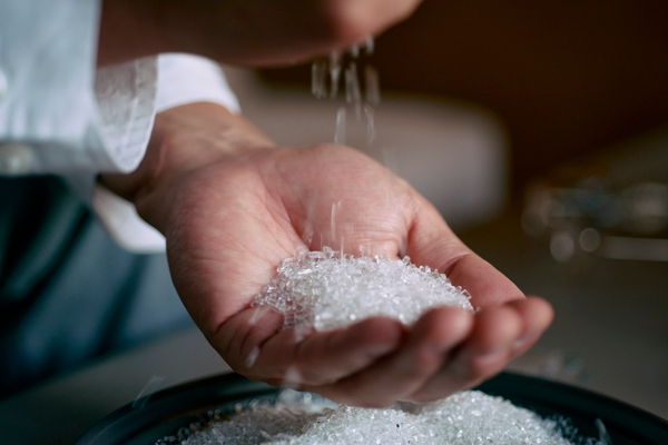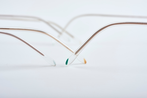 メガネフレームの耳にかかる部分に差し込まれている部品“モダン(先セル)”のプラスチックパーツに、世界初となるサステナブルなバイオマスプラスチック「アセチEC」を採用しました。長年を費やしパリミキと材料メーカー、製造メーカーで試行錯誤しながら、改良・改善を行いながら何度もテストを重ね、メガネフレームのパーツとして製品化しました。植物由来のバイオプラスチックを採用することで大気中のCO2排出量を減らすサステナブルな素材です。