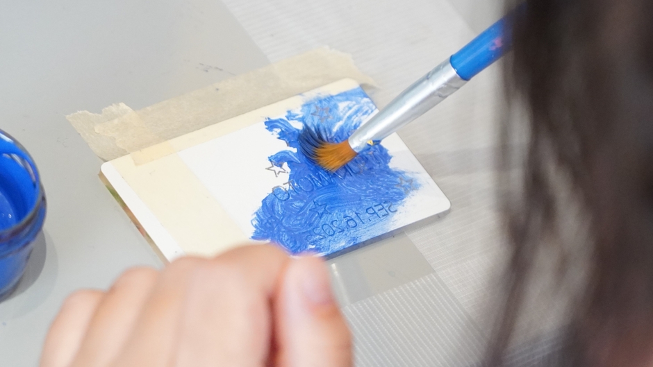 ②オリジナルもり吉プレートづくりの受付、簡単な説明、販売、加工補助