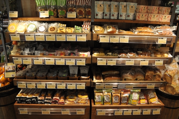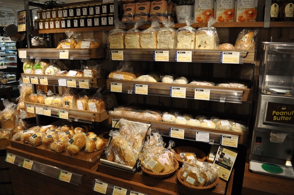 オープン以来、大変ご好評をいただいているパンコーナーはレジ通路横から入口の野菜売り場付近に移設し、見やすく選びやすい売り場にリニューアルいたしました。素材・製法にこだわったオーガニックパンを取りそろえております。また、専用のマシンで挽くピーナッツバターをお求めやすいようパン売り場の隣りで販売いたします。