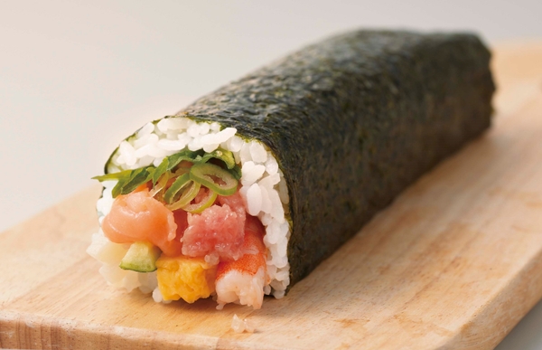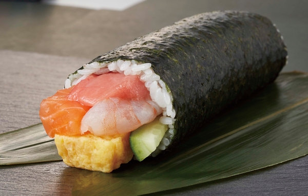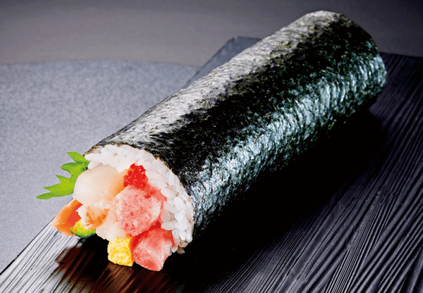 機能性表示食品であるライフオリジナルの“伊勢黒潮まだい”や北海道産帆立などをふんだんに使用した贅沢な海鮮太巻。