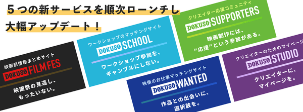 映画を観る人・つくる人・演じる人、みんなを応援する5つの新サービスを順次ローンチ!【DOKUSO映画館】