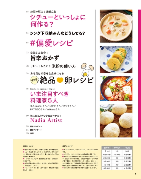 NadiaやInstagramなどのSNSで人気の料理家のレシピもたっぷり掲載。Nadia magazineでしか見られない、人気料理家の新レシピも必見です。