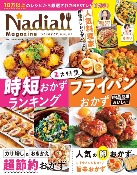 「Nadia magazine」は、レシピサイトNadiaで人気のテーマだけを盛り込んだレシピブック。最新刊のvol.07では時短おかず、フライパン1つでできる簡単レシピ、節約おかずを特集します。有料会員限定の人気レシピランキングも満載。この本でしか見られない、人気料理家のレシピも紹介しています。