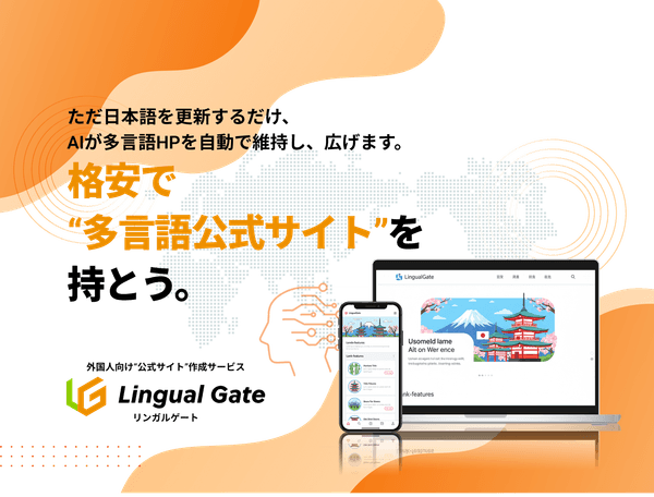 Lingual Gate(リンガルゲート)は、AI翻訳を活用し、外国人向けに最適化された多言語公式サイトを構築する制作サービスです。