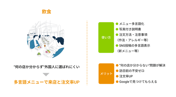 訪日外国人の増加に伴い、飲食店・宿泊施設・観光施設・小売店などにおいて、多言語対応の必要性は年々高まっています。