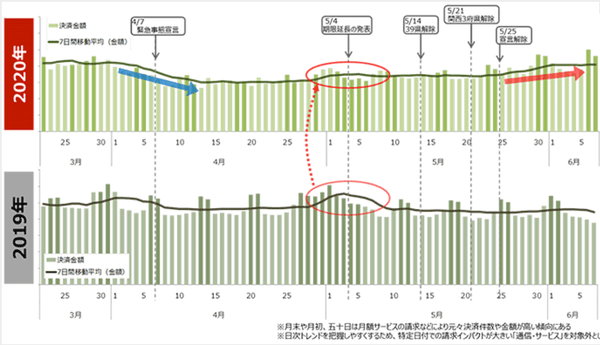 日本のネット通販市場は、年々伸びています。ネット通販市場の売上規模は、2019年度で19.4兆円(前年18兆円、前年比7.65%増)となっています。このうち、物販系の売上高は9兆2,992億円で伸び率8.09%増です。そして、今年2020年度は新型コロナウイルスによる外出自粛や感染を避けるなどの理由から、ネット通販による市場はより一層急拡大しています。特に、緊急事態宣言後のリアル消費が急減したのに対して、ネット通販による消費が急増しているのはクレジットカードの決済金額から推測できます。こうした状況から見えてくるのは、小売業や卸売業など流通では今後もさらにネット通販市場が拡大することです。また、製造業においても少量多品種生産への対応によって、製品生産に必要となる原材料や部品の調達数量が小さくなるのに伴って、調達頻度は少量で入庫受入の頻度が増えています。また、顧客やユーザーからネット経由で直接取引によって製品や修理パーツ、サプライ品などを届けることも今後増えていくと予想されます。これからは、従来の見込み生産に対応したサプライ型の在庫管理ではなく、都度ごとの注文に対応したデマンド型の在庫管理への対応が求められます。