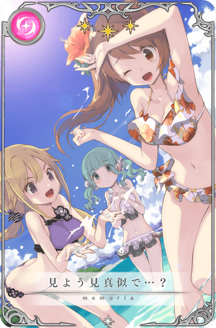 本ガチャでは、魔法少女「黒江 水着ver.(CV.花澤香菜)」をはじめ、新メモリア「新鮮なポジション」や「にぎやかな潮騒」「また、次の夏も」が期間限定で登場いたしました。