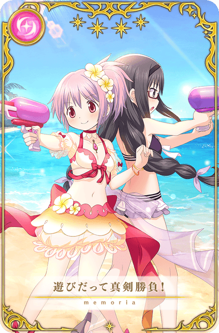 本ガチャでは、魔法少女「鹿目まどか 水着ver.(CV.悠木碧)」をはじめ、新メモリア「夏のベストタイム」や「遊びだって真剣勝負!」「今しか見られない花」が期間限定で登場いたしました。