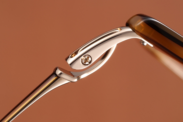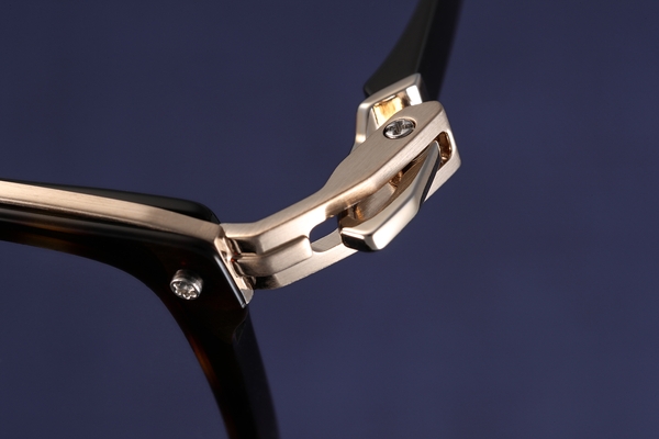 ヨロイに内包させたバネパーツは、鯖江光器のアイコンであるのと同時に、弾性のあるβチタンを採用し機能性も併せ持つ。