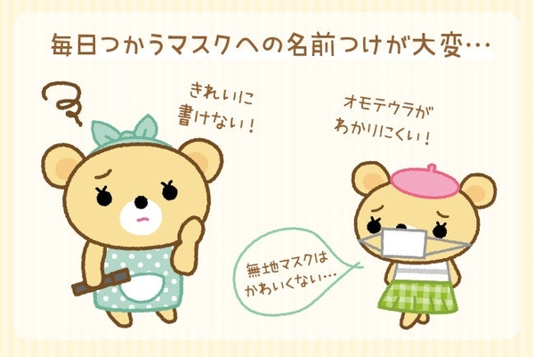 マスクが必須の昨今、保育園や幼稚園・小学校ではマスクの紛失防止・取り違え防止のためにマスクへの名前つけを行わなければならなくなりました。