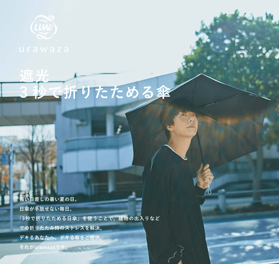 晴れの日も快適宣言!!!メディアでも人気の「urawaza(ウラワザ)」から遮光率99.99%以上の3秒で折りたためる日傘が登場ーMOONBATー