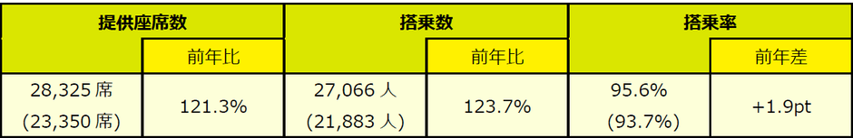 ※日本発・日本着それぞれ、一番高い搭乗率を赤で表記しています。