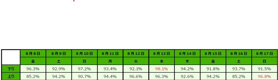 ※下り・上りそれぞれ、一番高い搭乗率を赤で表記しています。