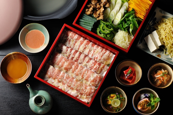 冬の沖縄で親しまれている食材をふんだんに使用した鍋料理を客室で味わえます。泡盛には肉質を柔らかくし、肉や魚介類の臭みを消す特性があります。その特性を活かして、メインのお肉は泡盛のもろみにつけて柔らかくし、出汁にも泡盛を使うことで食材の美味しさを引き立てました。また、タレには泡盛を使った発酵食品の豆腐ようを使用しており、一層味わい深く楽しめます。飲むだけではない泡盛の魅力を感じられます。