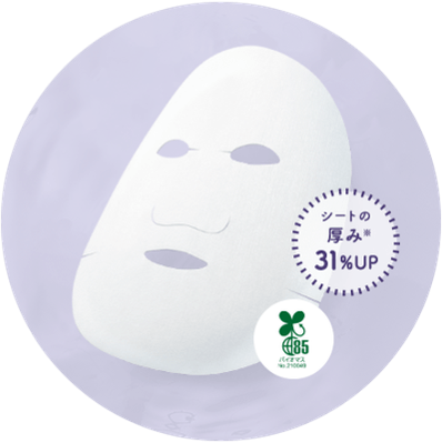 環境に配慮した植物由来原料を使用した3層構造のミルフィーユシートを採用。真ん中の層に閉じ込めた美容液を、肌へ吸い付くように密着する上下の層から角質のすみずみへ浸透させます。