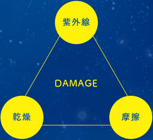 紫外線、乾燥、摩擦によるくもり肌トライアングル。