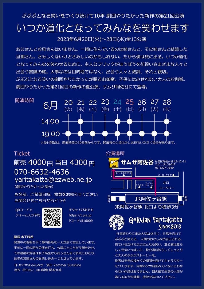 ぷぷぷとなる笑いの劇団やりたかったが贈るお伽噺。子供にはみせれない大人のお伽噺。 劇団やりたかった第21回目の新作の夏公演、ザムザ阿佐谷にて登場。