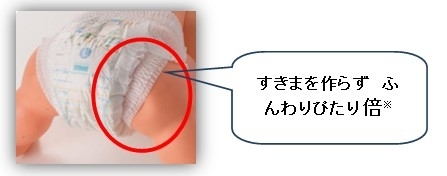 ・赤ちゃんのウエストまわりのデリケートな肌にもやさしく包んでスキマをつくりません。