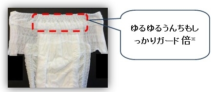 ・Sサイズ用に、背中側からの軟便染み出しモレを軽減する構造を実現しました。