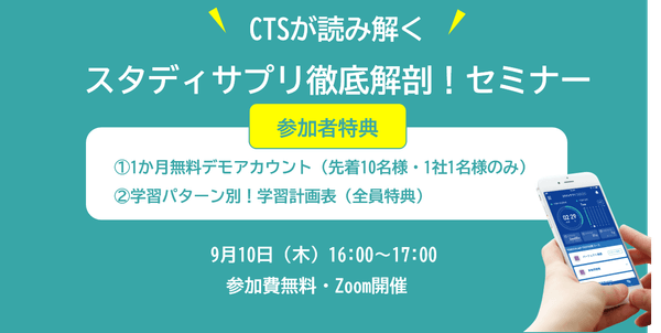 「スタディサプリ徹底解剖セミナー」を開催!学習効果を最大にする学習法をお伝えします -9月10日(木)16:00~17:00 Zoom開催-