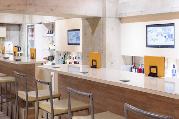 『声優のたまご』は、カウンター8席のみで白を基調にした落ち着いた雰囲気。店内には、パフォーマンス用のステージがあります。