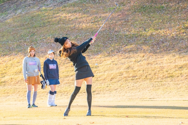 また、出演者のキュートなゴルフウェア姿も番組のみどころの一つ。坪井ミサトさんは、米澤有プロがデザインした黒のパーカーとミニスカート姿で登場。紺野ゆりさんと美波千夏さんも、自身がデザインしたウェアを身にまとい優勝を目指します。