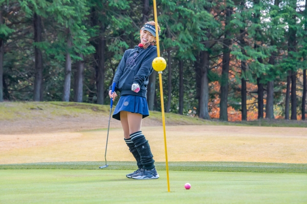 1月はスポーツ女子として人気の坪井ミサトさんが2度目の参加。日頃から野球やマラソンなど身体を動かすことが大好きなミサトさん。前回はその運動神経を生かし見事優勝を勝ち取りました。そんなスポーツ万能なミサトさんの1打目。緊張を隠せない様子でしたが見事なドライバーショットを放ち、笑顔を見せます。更にグリーン上では…。那珂カントリー倶楽部(茨城県)にて戦いの幕が切って落とされます。