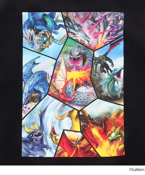 色彩豊かなイラストが細部にまで繊細に表現された転写プリントのロンT&スウェットは、ワクワクが止まらない、今にもドラゴンや恐竜が飛び出してきそうな迫力のある世界観がデザインされたアイテム。大人っぽいベーシックカラーのボディだからこそ、色鮮やかなイラストが映える逸品です。