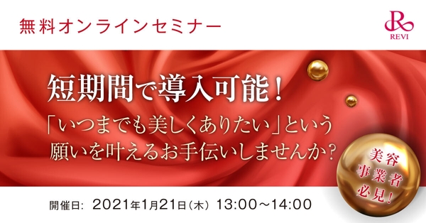 ◆1月21日(木)無料セミナー◆初のオンライン開催!美容事業者必見! 次世代フェイシャルスキンケア商材【REVI(ルヴィ)】の代理店募集。「いつまでも美しくありたい」という願いを叶えるお手伝いしませんか?