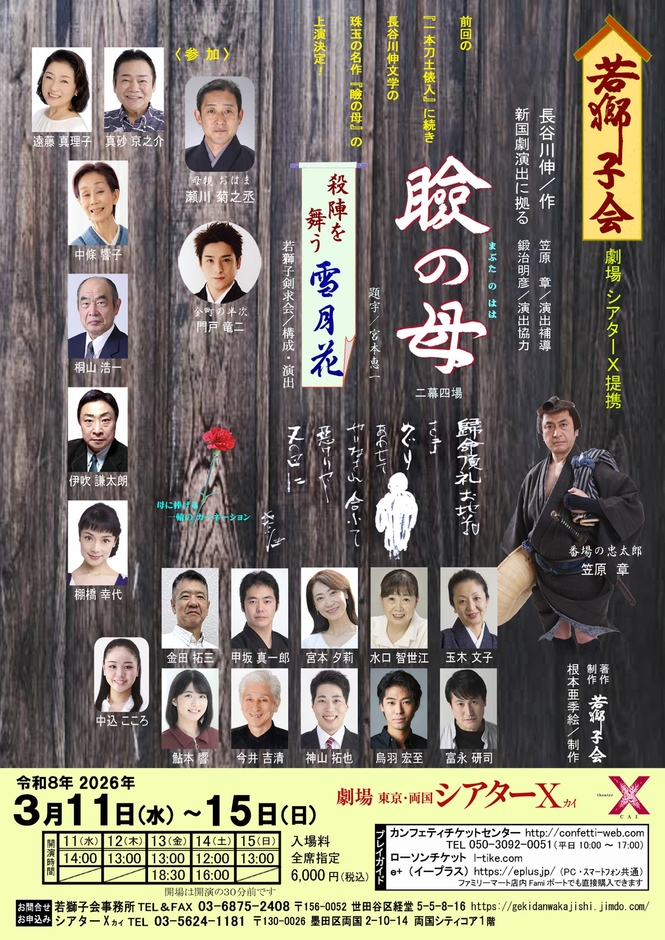 『瞼の母』『殺陣を舞う 雪月花』が2026年3月11日 (水) 〜 2026年3月15日 (日)にシアターX(シアターカイ)(東京都 墨田区 両国 2-10-14)にて上演されます。