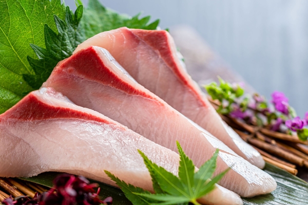 旨味のある脂がたっぷり乗ったぶりの身は醤油に付けると脂が広がります。お造りのほかに、軽くあぶった「ぶりの炙り握り寿司」もご用意しております。程よく脂が溶け出し酢飯とも合う一品です。