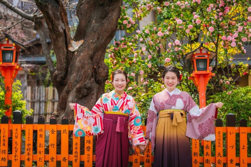 京都地下鉄烏丸線・五条店駅から徒歩3分、創業160年以上続く京都の呉服屋を母体にした国内最大級の着物レンタル店で袴をレンタル、京都の代表的な観光地である祇園・東山散策での写真撮影で、素敵な思い出作りのお手伝いをさせていただきます。