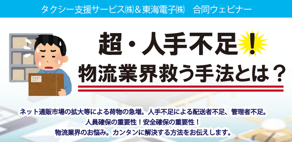 【タクシー支援サービス×東海電子】コラボウェビナー「超・人手不足!物流業界救う手法とは?」11月29日(月)無料開催のお知らせ