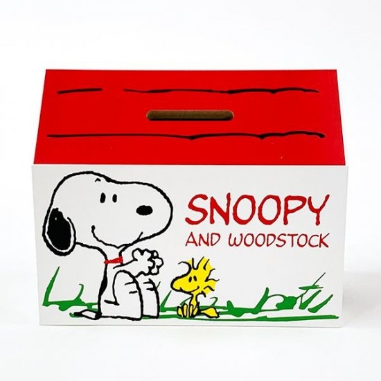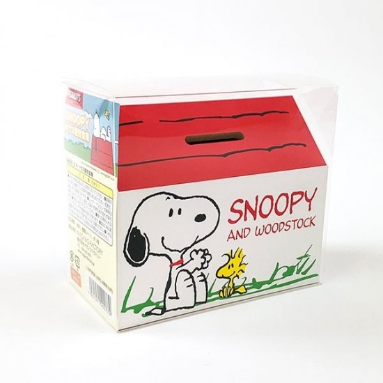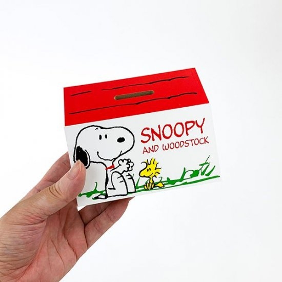 屋根の部分にコインが入れられるようになっていて、表と裏には違うポーズのスヌーピーが可愛くお座りしています。