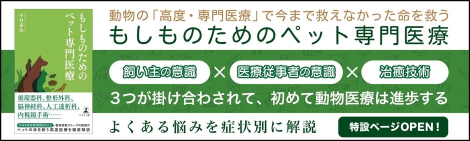 本特設ページでは、「もしものためのペット専門医療」を刊行した中村泰治氏が代表を務める、動物の高度医療を目指す小滝橋動物病院グループ獣医師・看護師たちが語る診断や治療の最前線を紹介しています。