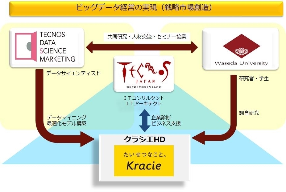 2014年4月23日 09:30株式会社テクノスジャパン(代表取締役:城谷 直彦、証券コード:3666、以下「テクノス」)及び子会社であるテクノスデータサイエンス・マーケティング株式会社(代表取締役:城谷 直彦、以下「TDSM」)と早稲田大学 総合研究機構 マーケティング・コミュニケーション研究所(所長:恩藏 直人、以下「研究所」)は、ビッグデータ研究プロジェクト第1弾として、「テクノス」の主要顧客であるクラシエホールディングス株式会社(代表取締役:石橋 康哉)の商品ブランド価値向上を目的に消費者行動分析を通じた研究プロジェクトを開始したことをお知らせします。