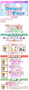 メニューリスト→ショッピング/チケット→くらし雑貨→「厳選!!SelectFans」