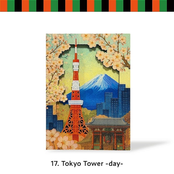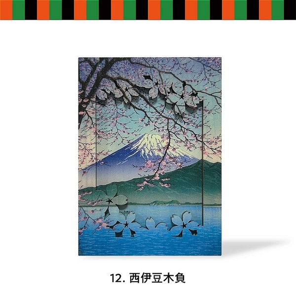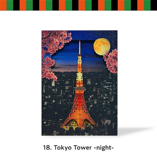 本シリーズは、 浮世絵作品に加え、東京タワーや富士山などの現代的な日本モチーフも含む、全10種の和風立体アート です。